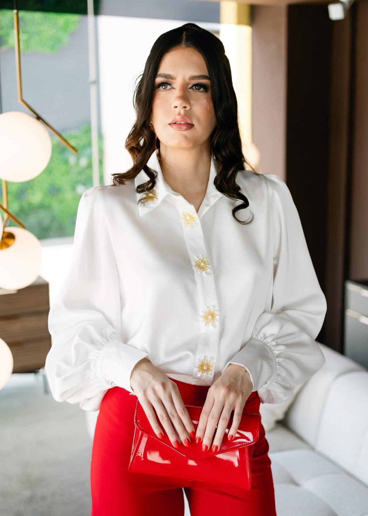 Our elegant white top is the perfect balance between subtlety and sophistication. Ideal for a special occasion or for turning everyday moments into something unforgettable.